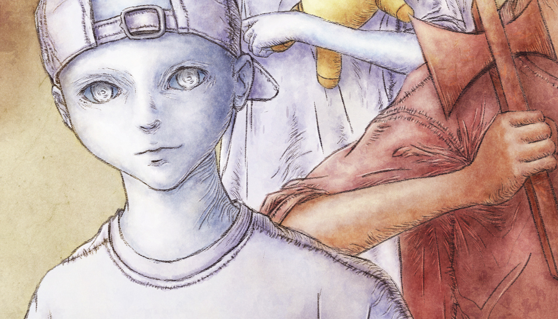 In this illustration I wanted to represent Deusinho, Xanguinho and Ísis together with the clouds and the dreamlike atmosphere of the place where they live. When applying my style I thought it would fit better if they looked a little more teen-like.